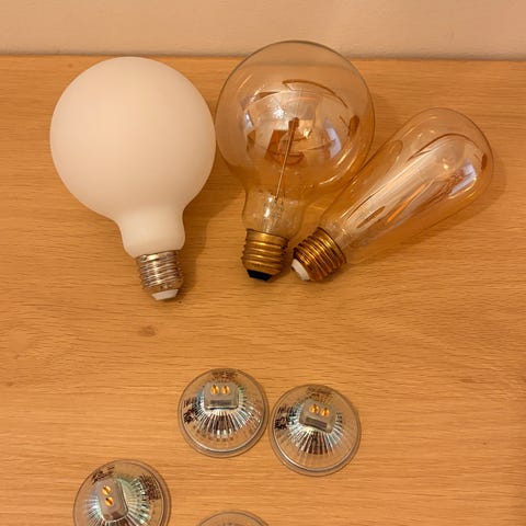 Ubrukte lyspærer, 40, 60, 100, 150, 200 og 250 watt