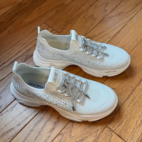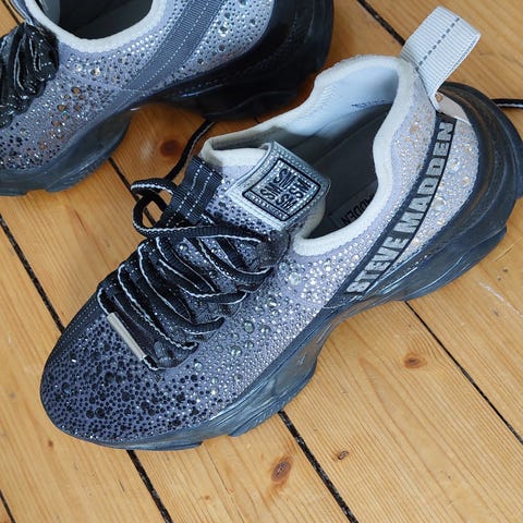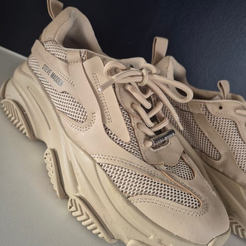 Steve Madden sneakers joggesko i størrelse 39. Modellen har svart overdel med dekorative detaljer og snøring foran. Skoene har kraftig yttersåle med mønster for grep. Passer til hverdagsbruk og fritid.