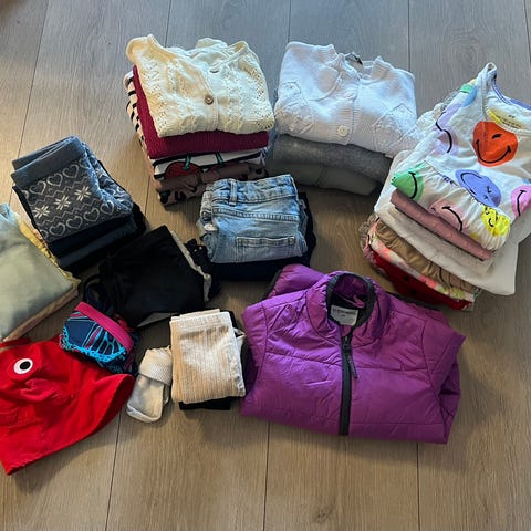 Alle klærne er helt nye og aldri brukt. Størrelsene passer til 4–5 år.