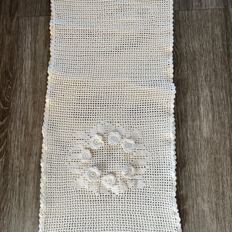 2 stk. hekla gardiner selges. Pent håndarbeid.