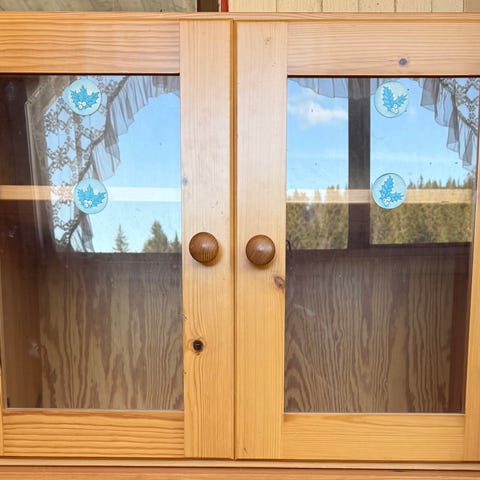 Vitrineskap i heltre med glassruter