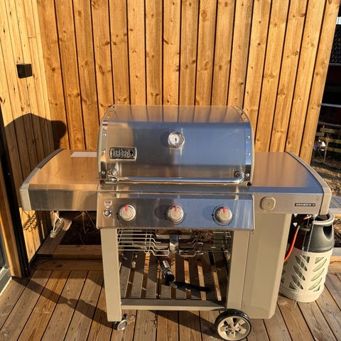 Selger en stor og solid Weber Genesis II gassgrill med 6 brennere. Grillen har god kapasitet og passer perfekt for deg som liker å grille mye mat samtidig. Stor grillflate og varmehylle øverst.