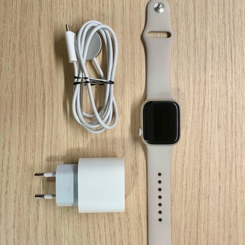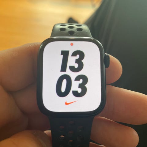 Det følger med original emballasje, magnetisk ladekabel og Nike-sportsreim.