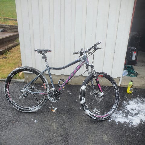 Scott terrengsykkel «Aspect ST Suntour« for ungdom. Sykkelen har small ramme (S) og 27,5" står det på hjulet. På rammen står det: 750