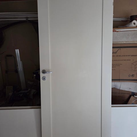 Selger et pent brukt dørblad fra Harmonie sin populære Line-serie. Døren er ca. 2 år gammel, uten skader, og fremstår som svært pen. Dette er en massiv innerdør med dype, solide speil og god lyddemping – perfekt for både moderne og klassiske interiør.
