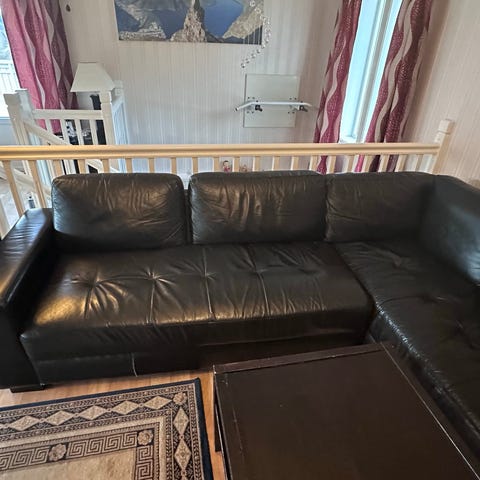 Sofaen har en del synlig bruksmerker og noen merker etter pusekatten. Gis bort mot henting. Mål på sofaen er 270cm x 205cm