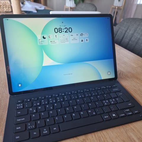 Nettbrettet har blitt oppbevart i Samsung sin offisielle magnetiske mappe, med kickstand og beskyttelse over skjerm. Lette bruksmerker på den magnetiske mappen, nettbrettet er ellers strøkent