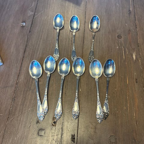 Vintage Spiseskjeer 20g sølv. Flat rose.