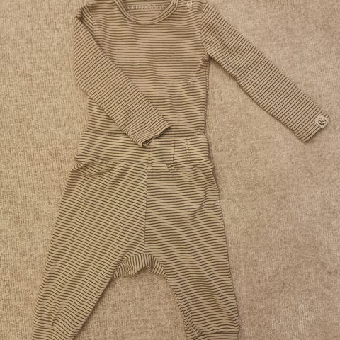 Newbie ullsett babyklær i størrelse 62 for unisex. Sett i myk ull i grå farge med struktur og diskret mønster. Overdelen har omslagsåpning med trykknapper foran for enkel av- og påkledning. Bukse med strikk i livet og ribbekanter nederst på bena for god passform. Egnet som innerlag eller kosedress til hverdagsbruk for baby.
