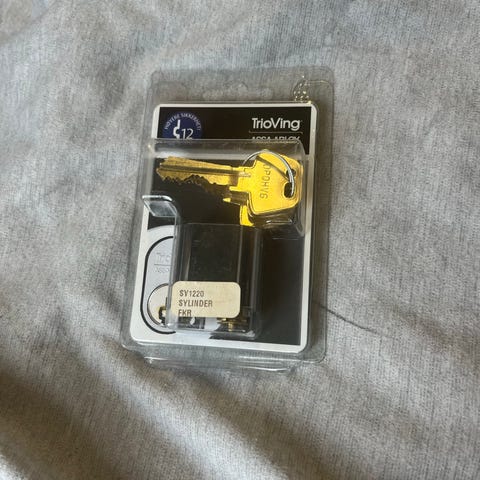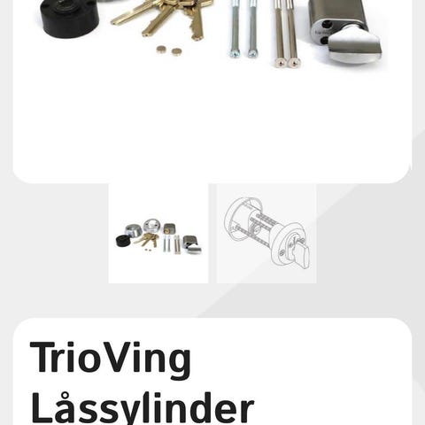 Sylinderen er beregnet for bruk i utvendige sylinderlåser i 195–198-serien. Pakken inneholder sylinder, festebeslag/skilt og tre nøkler. Utførelse i metall med standard nøkkelprofil fra Trioving.