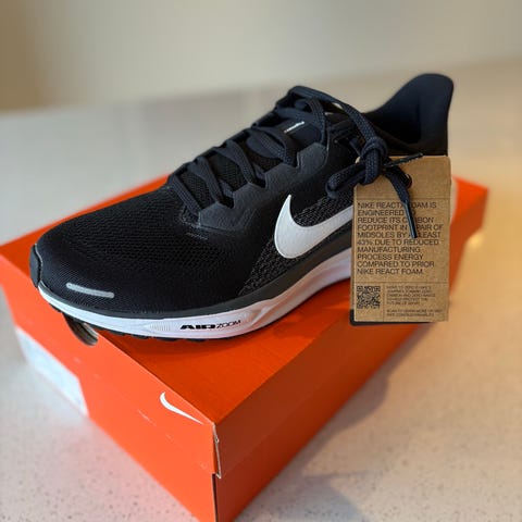 Nike Air Pegasus Premium løpesko i størrelse 42,5. Nike Pegasus Premium er en komfortabel og responsiv løpesko med den velkjente Pegasus-passformen. Overdelen i strikket materiale og mono-mesh gir god støtte og pusteevne. Mellomsålen kombinerer ZoomX- og React X-skum med en heldekkende Air Zoom-enhet for optimal demping, stabilitet og energiretur. Yttersålen har slitesterk gummi for godt grep. Perfekt for rolige løpeturer med fokus på komfort og flyt i steget.