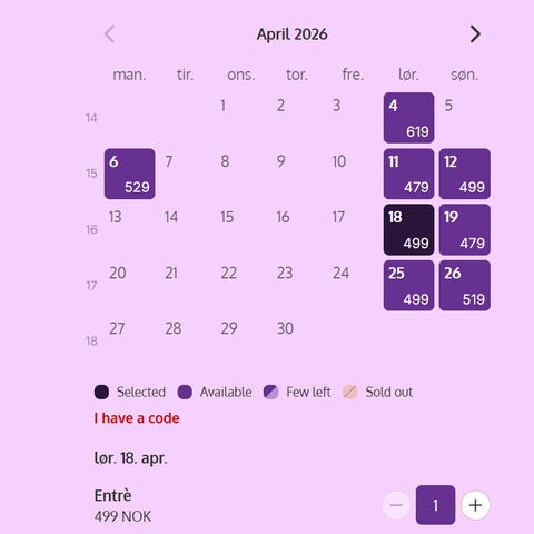 Selger 4 dagskort til Kongeparken som er gyldig til valgfri dag i perioden april til August 2026