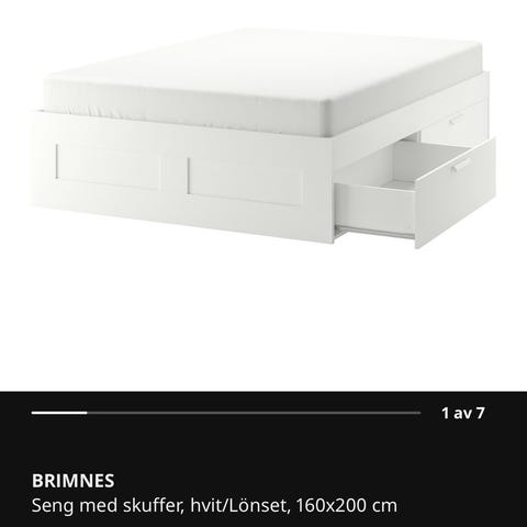 Ikea Brimnes seng. Praktisk seng med fire oppbevaringsskuffer.