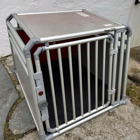 4pets ProLine hundebur i aluminium for bruk i bil. Buret har skrå bakside tilpasset bagasjerom, gitterdør i front og solide plastforsterkede hjørner. Konstruert i lette aluminiumsprofiler og platevegger. Sertifisert etter TÜV SÜD prøvespesifikasjon for hundebur til kjøretøy. Har desverre ikke nøkkel.