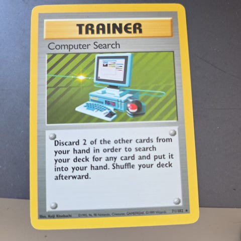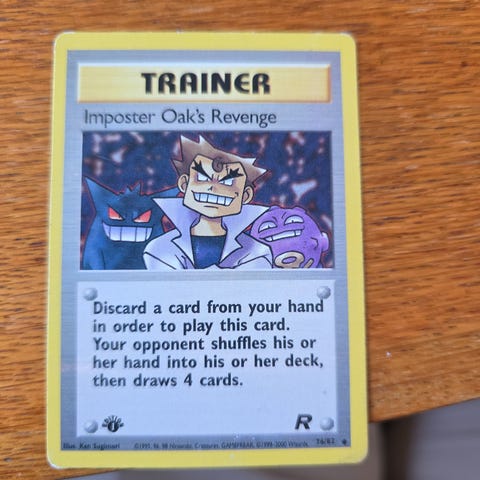Pokémon Professor Oak Trainer kort. Samlekort til Pokémon Trading Card Game med teksten «Discard your hand, then draw 7 cards». Kortet viser figuren Professor Oak og er beregnet for bruk i Pokémon-kortspill og som samlerobjekt.