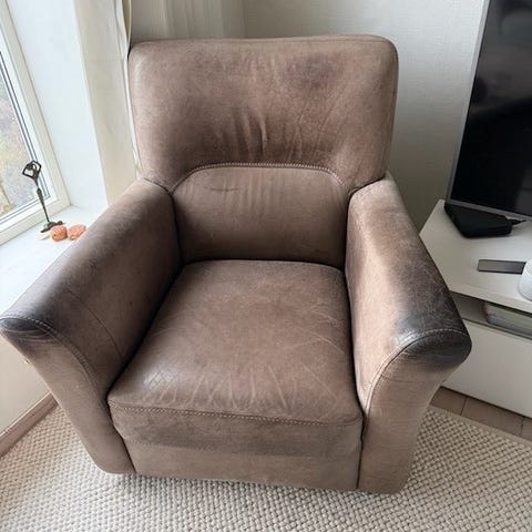 Lenestol i svart skinn/skai