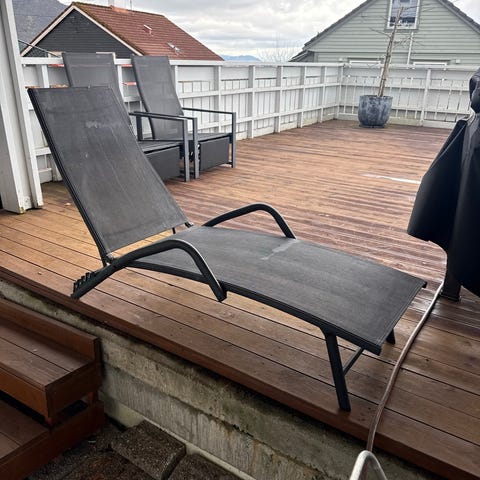 RESERVERT! 2 stykk solsenger i svart farge med ramme i metall og liggeflate i tekstil. Ryggdelen kan justeres til ulike posisjoner for ligging eller halvsitting. Solsengen har hjul på bakbeina som gjør den enkel å flytte. Egnet for bruk på terrasse, balkong eller i hage. Selges som sett med to solsenger dersom ikke annet er oppgitt i annonsen. Pris 350kr per solseng. Kom gjerne med fornuftige bud.