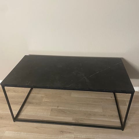 Sort sofabord med mulighet for oppbevaring under bordet. Bordet har noe merker i overflaten, men fortsatt generelt et pent bord. Hentes fortløpende pga. flytting.