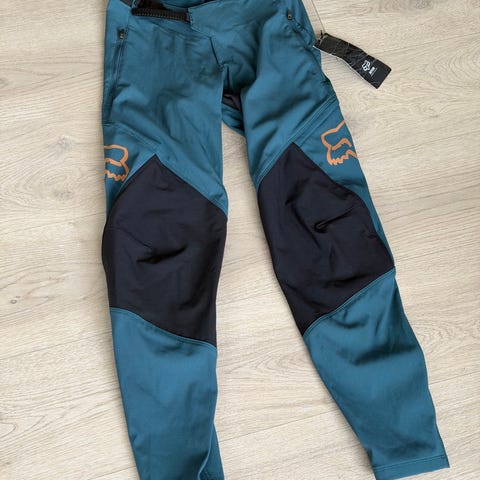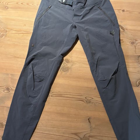 Fox Flexair bukse i oliven og svart, størrelse 32. Lett og pustende sykkel-/terrengbukse med forsterkede paneler på knær og sete, god stretch. Glidelåslommer foran for sikker oppbevaring. Ventilasjonshull for bedre lufting under aktivitet. Egnet til terrengsykling, BMX og annen aktiv bruk utendørs.