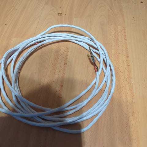 10 m RCA/phon hvit signalkabel fra Argon, kjøpt på HiFi-klubben en tid tilbake for å koble til en subwoofer som sto bak sofaen, derav den lange lengden. Bra tykkelse på kabel, forgylte koblinger og smidig/felksibel å legge frem mellom utstyr.