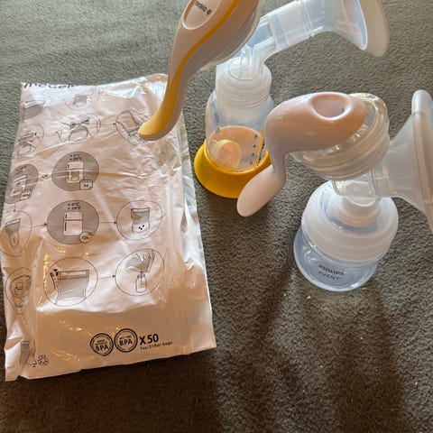 Elektrisk brystpumpe, med flaske, lader osv.