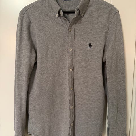 Ralph Lauren skjorte for herre i størrelse S. Skjorten er blå. Den har lange ermer, knappestolpe foran og knapp i kragen (button-down-krage). Klassisk Ralph Lauren-logo er brodert på brystet. Passer til både hverdagsbruk og mer formelle anledninger, og kan brukes alene eller under genser eller jakke.