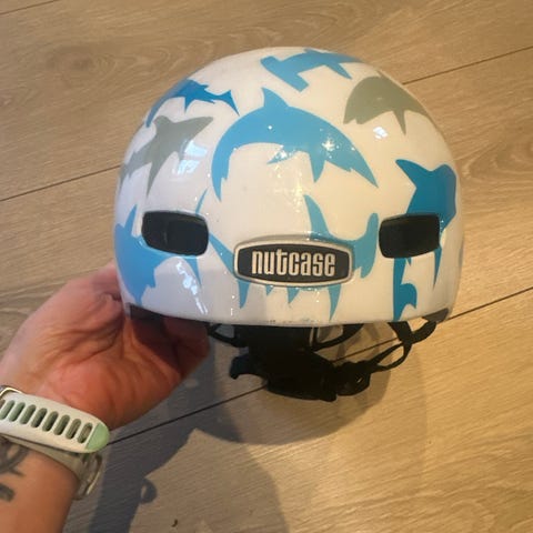 Nutcase sykkelhjelm i blå farge. Str. Medium, 56 - 60 cm.