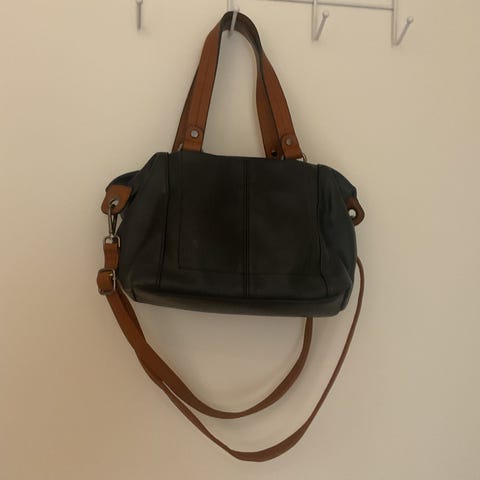 Materiale: kunstlær (syntetisk). Egner seg som hverdagsveske eller til enklere penere anledninger.