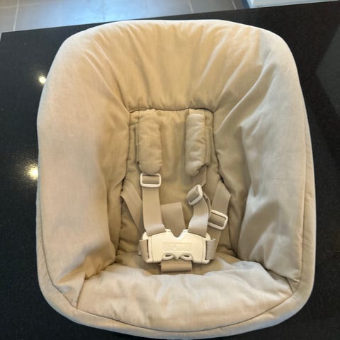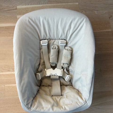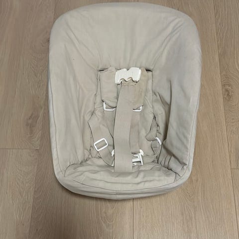 Stokke nyfødtstol (newborn seat) i beige farge.