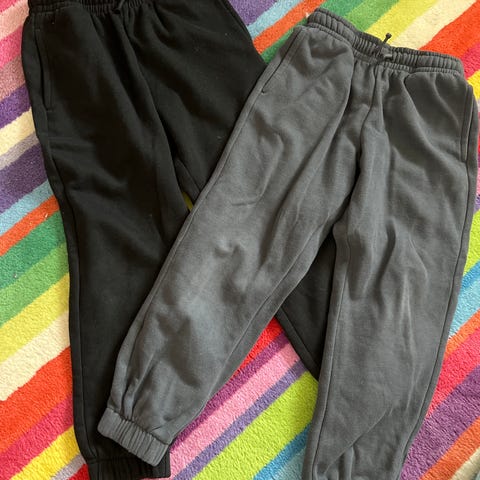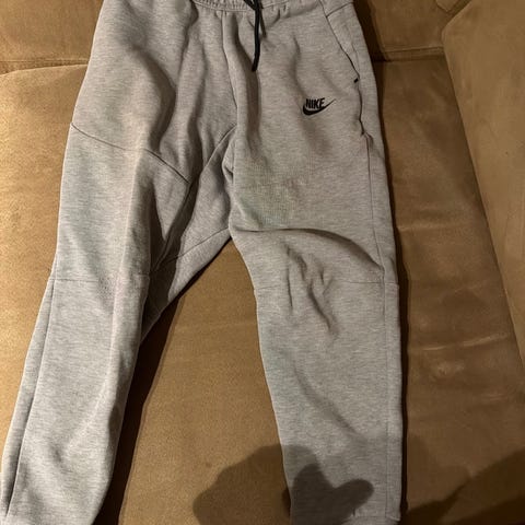 Nike joggebukse for barn i størrelse 134-140, unisex. Joggebuksen er i bomull og har elastisk linning med strikk og ribbekant nederst ved bena. Flerfarget sett på bildet, med én grå Nike-bukse og én blå bukse fra annet merke. Egnet til hverdagsbruk og fysisk aktivitet for barn i ca. størrelse 140. Champion joggebukse følger ogå med. Se bilder! Pris for begge❤️ som nye, kun vasket❤️