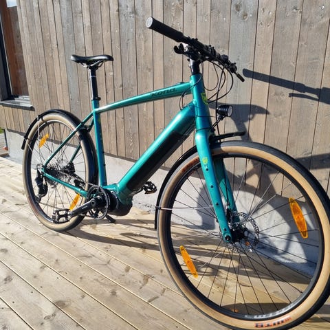 Pent brukt el-sykkel. Kommer rett fra service hos Djurny. Ny kassett, nytt kjede og nye bremseklosser. Noen bruksmerker, men i god stand. Sykkelen har gått 2030 km.