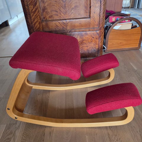 Ergonomisk stol/krakk, rødt ullstoff.