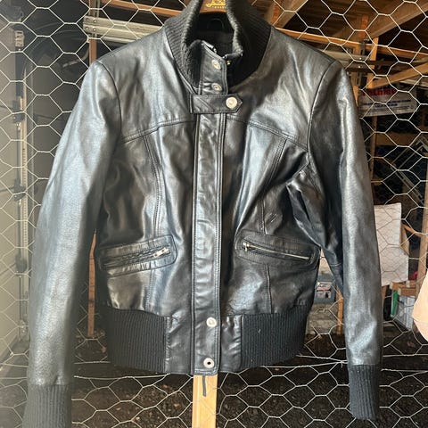 Eldre skinnjakke I ekte skinn selges. Det er en liten L