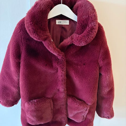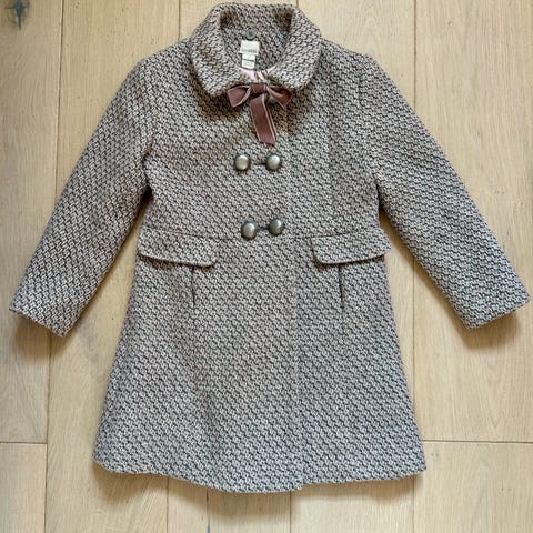 Kåpe til hverdag og fest, såpass søt. Designet in London. MONSOON children. Foret med silke + en pen og løs pels krage. Camel farget.