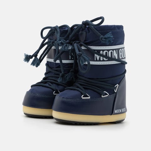 Moon Boot Original vintersko unisex i størrelse 38. Skoene har blå overdel med hvite lisser og detaljer, samt kraftig såle. Modellen er laget for bruk i kaldt vær, med høy skaft som gir god dekning rundt ankelen. Passer til både jenter og gutter som trenger varme og praktiske vintersko. Lite og pent brukt.