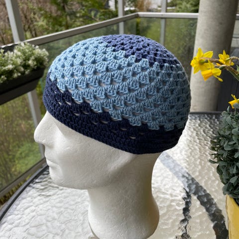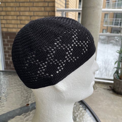 Håndlaget heklet kufi / lue til herre i 100% bomull i god kvalitet.