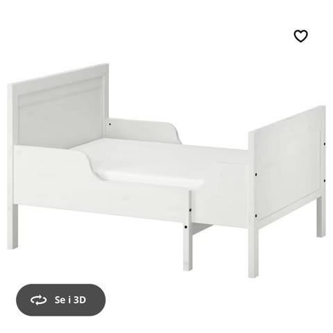 IKEA juniorsenger i hvite. Sengene er tilpasset barn som har vokst ut av sprinkelseng, og har lav høyde som gjør det enklere for barnet å komme seg inn og ut av sengen selv. Passer til standard madrass for juniorseng (ikke inkludert). Egnet til barnerom uttrekkbar. Selger 2 senger-begge har vært montert, 1 ubrukt, 1 brukt i et år. Begge pene. Står nå demontert i innendørs bod. Selges samlet for 2800 eller separat for 1600 per stk.