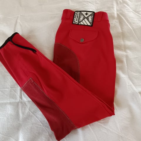 Euroriding ridebukse i str 146. Helforsterkede. I utgangspunkt pent brukt pent brukt, men har fått noen bruksmerker allikevel (små flekker, nupper).