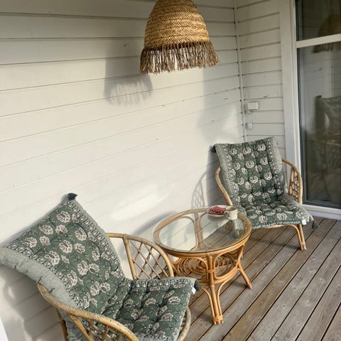 To flotte loungestoler i lakkert aluminium med tykke puter for bruk på veranda, terrasse eller vinterhage. Lav vekt og enkle å flytte på.