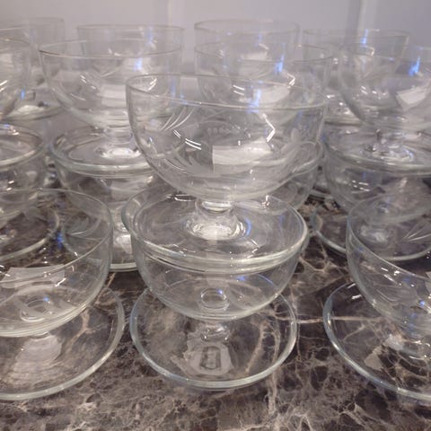 Diameter skålen 9,7 cm, litt bredere nede. Høyde 8 cm.
