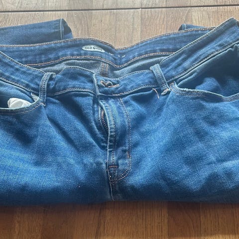 Blå jeans i 99% bomull og 1% elastan. Størrelse 34. Innerbeinslengde ca. 76 cm.