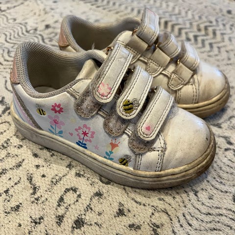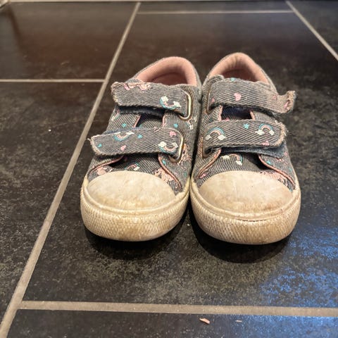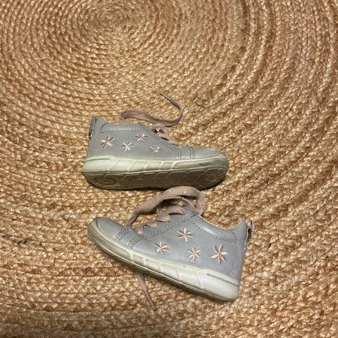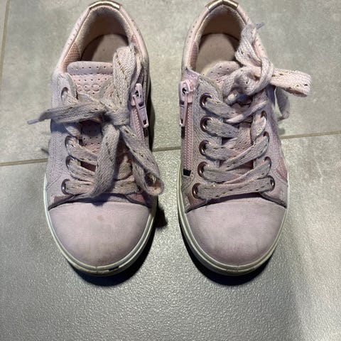 Superfit joggesko for jente i størrelse 28. Skoene er grå med mønster og har lisser og glidelås på siden for enkel av- og påkledning. Overdelen er i tekstil/syntetisk materiale, og sålen er i gummi med stjernemønster under. Egner seg til hverdagsbruk og lett aktivitet.