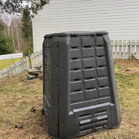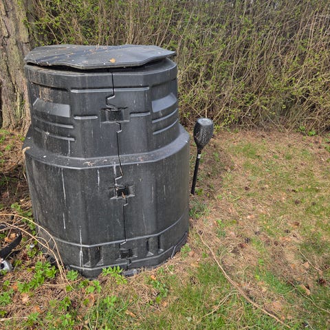 Den for hageavfall har knekt noen steder, men kan fortsatt brukes.
