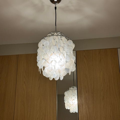 Selger skjell taklampe, 150kr.