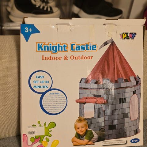 Leketelt med avtagbart tak selges som det er. Kjempemoro for de små, både inne og ute. Praktisk da det kan pakkes bort i en liten rund pose. Noe bruksmerker kan forekomme. Se bilder.