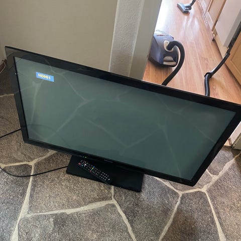 Sony TV i svart farge. Leveres med original fjernkontroll som vist på bildene. Passer til vanlig TV-bruk i stue, soverom eller andre rom der det er behov for en enkel TV-løsning. Nærmere tekniske spesifikasjoner som skjermstørrelse og oppløsning er ikke oppgitt.
