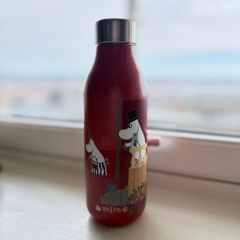 Flasken er laget i rustfritt stål og har dobbel isolasjon som holder drikke varm i opptil 12 timer og kald i opptil 24 timer, ifølge merkelappen.