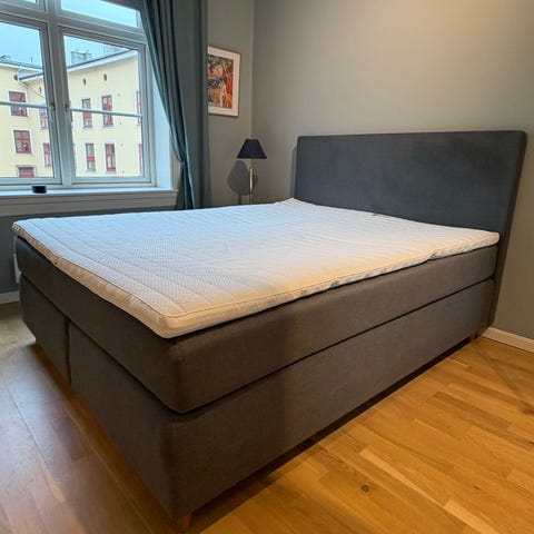 Selger seng 160/200 grunnet overgang til større seng. Sengen ble kjøpt i november 2024. Har kvittering. Fremstår som ny. Kan kjøre den for deg om det er ikke langt rundt Jessheim-Nannestad. Også retning Oslo.