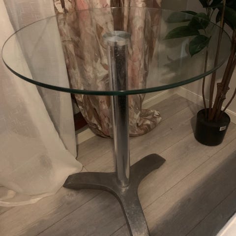 Vurderer å selge denne utrolig vakre pidestallen med to glass plater i herdet glass, nydelig vakkert mørkt treverk og stål. Det er ingen synlige merker eller skader på denne.