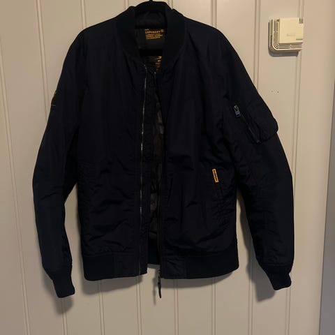Mørke blå Superdry vårjakke, str M selges kr 250,-